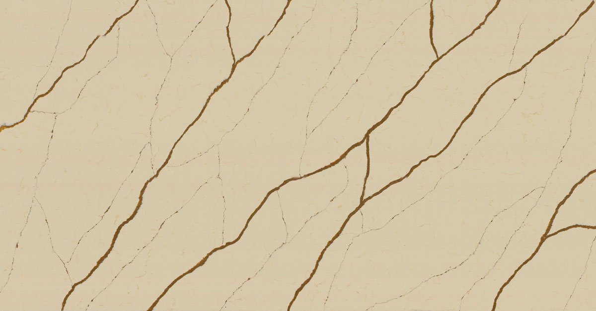 Всю поверхность Sofita Beige пересекают контрастные вены цвета карамели. Несмотря на то, что у кварца очень теплый бежевый тон, благодаря рисунку выглядит он эффектно и притягательно. Агломерат имитирует натуральную текстуру мрамора, но при этом лишен всех недостатков этой породы: материал очень прочный — он не будет ломаться по жилам, как это бывает у природного аналога, обладает минимальным водопоглощением и не боится пищевых кислот (например, лимонного сока или уксуса).